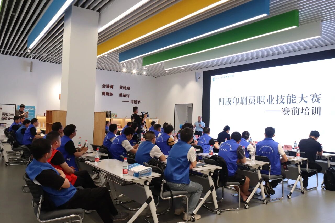 培训课上,向明强院长等人为参赛机长作大赛规则、凹版印刷技术系统培训。经过笔试成绩合格后的选手,将于15日下午在浙江港发软包装有限公司进行上机操作考试。
