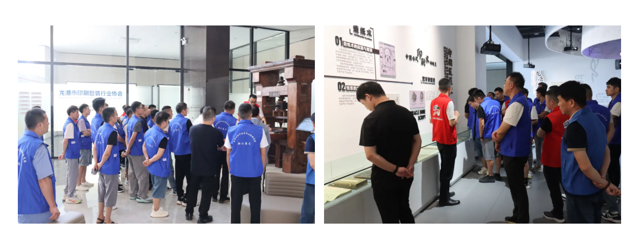 课间,梁孝克带大家参观印艺小镇一楼展厅,了解印刷发展史和龙港印刷产业创新发展情况。