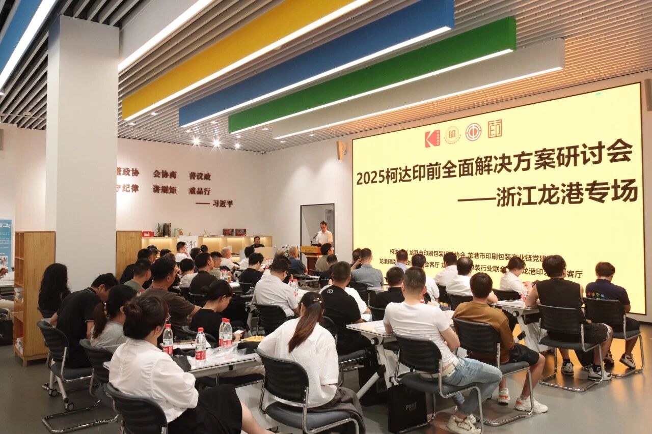 9月25日下午,“2025柯达印前全面解决方案研讨会(浙江龙港专场)”在龙港印艺小镇一楼印刷包装政协委员会客厅成功举办,吸引龙港、苍南、台州仙居等地近80名印刷企业负责人、技术骨干参会。