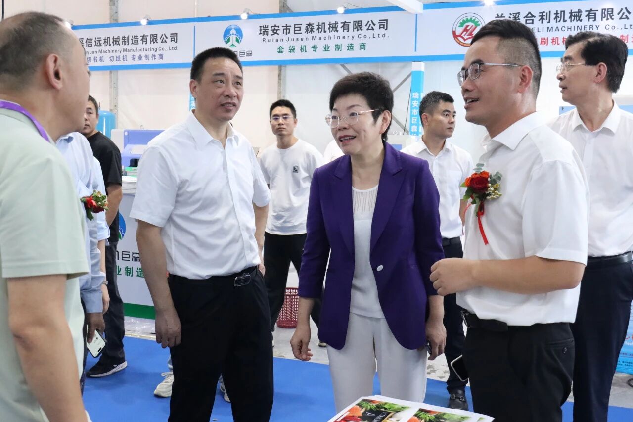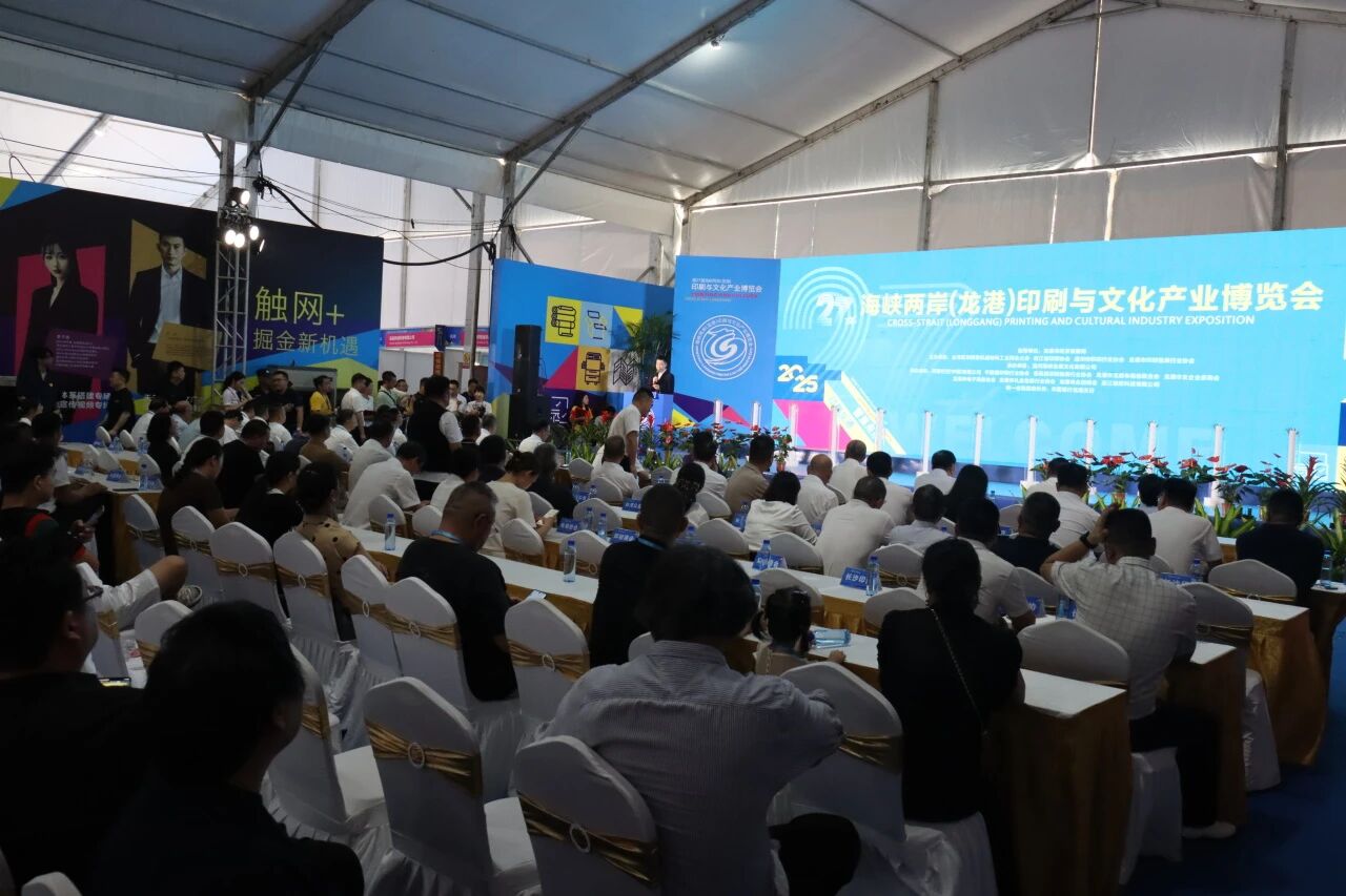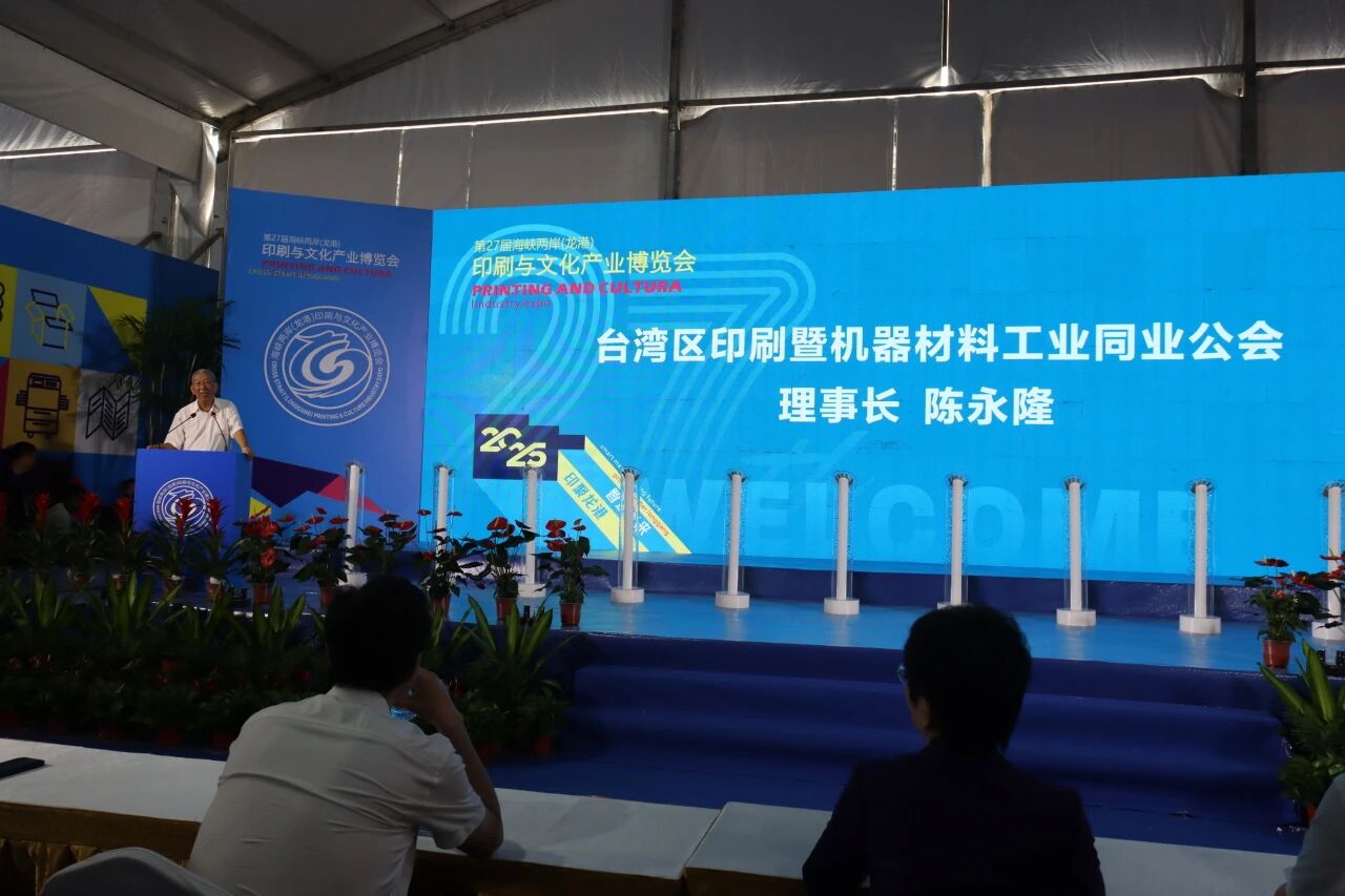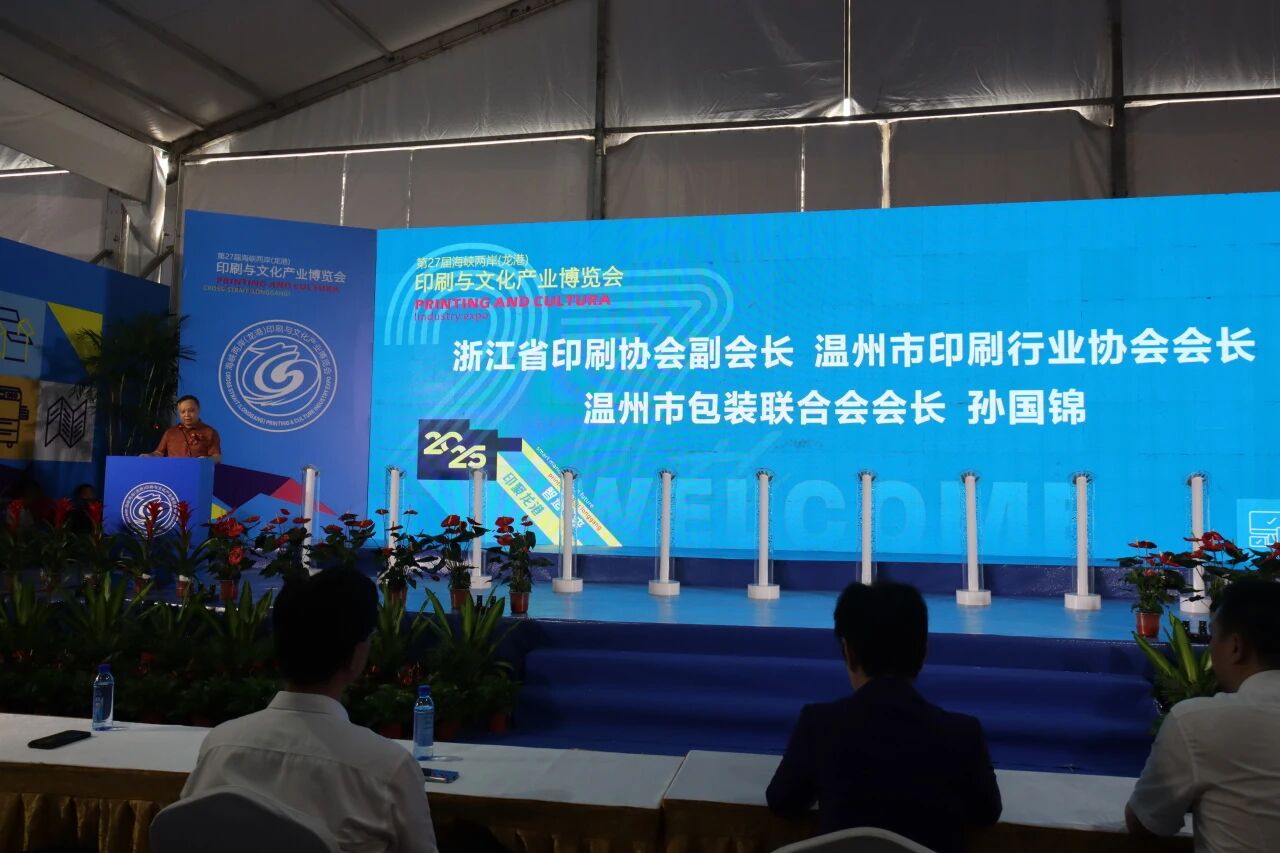 中共龙港市委常委黄振国致开幕辞。龙港印博会自1998年创办以来,成为展现印刷产业前沿技术、推动行业交流合作、共建两岸技术共享的优质平台。2002年龙港荣获“中国印刷城”称号,如今已建成省级特色小镇,集聚印刷包装相关市场主体4.7万余家,15万从业人员,拥有印前设计到印后加工的完整印刷产业链。他希望,通过印博会这一交流平台,推动印刷业迈向智能化、数字化、绿色化,成为行业发展新动能,进一步深化两岸协同合作,共同谱写中国印刷业高质量发展新篇章。