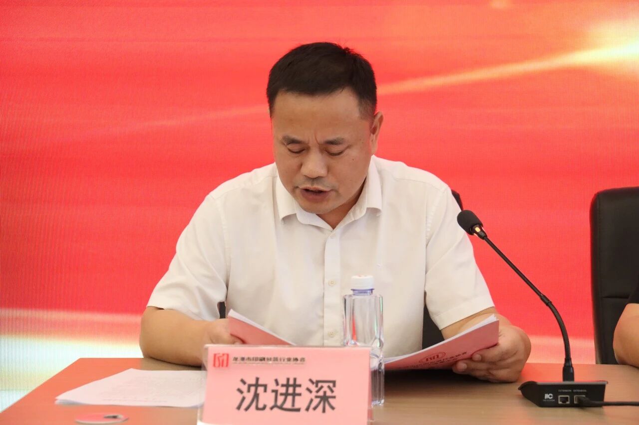 常务副会长周春铁宣读《关于成立龙港市印刷包装行业协会换届领导工作小组的草案》及拟提名人员名单