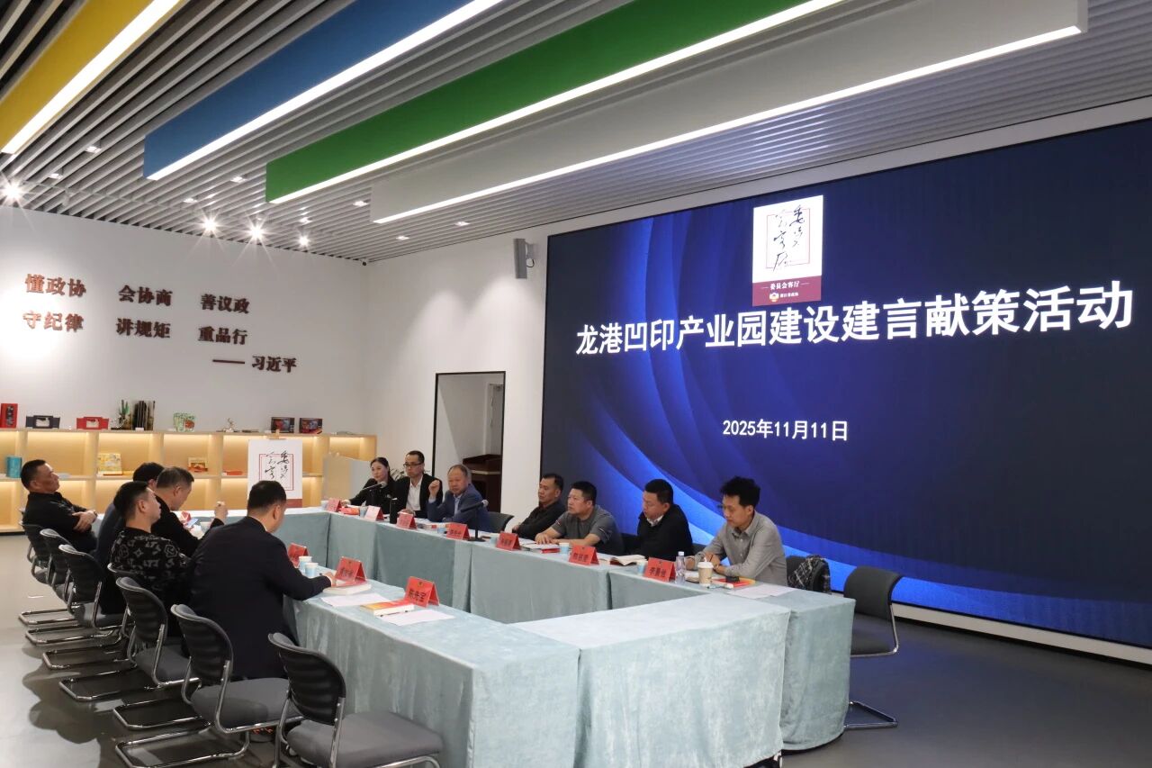 11月11日下午,龙港印刷包装政协委员会客厅牵头搭建沟通桥梁,组织会客厅成员、业主单位龙港市国资集团及意向入驻凹印企业主开展专题座谈,凝聚多方智慧为产业园高质量建设建言献策。