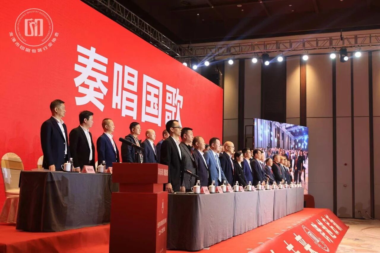 大会在雄壮的国歌声中拉开帷幕。中国印刷技术协会、中国包装联合协会向大会发来了热情洋溢的贺信。贺信高度肯定过去五年龙港印刷包装行业所取得的成就及协会所取得的工作成绩,号召龙港印协深入贯彻党的二十届四中全会精神,带领全体会员凝心聚力、勇毅前行,让“中国印刷城”的旗帜在高质量发展的浪潮中高高飘扬,共同书写龙港印刷包装产业更加辉煌的新篇章。