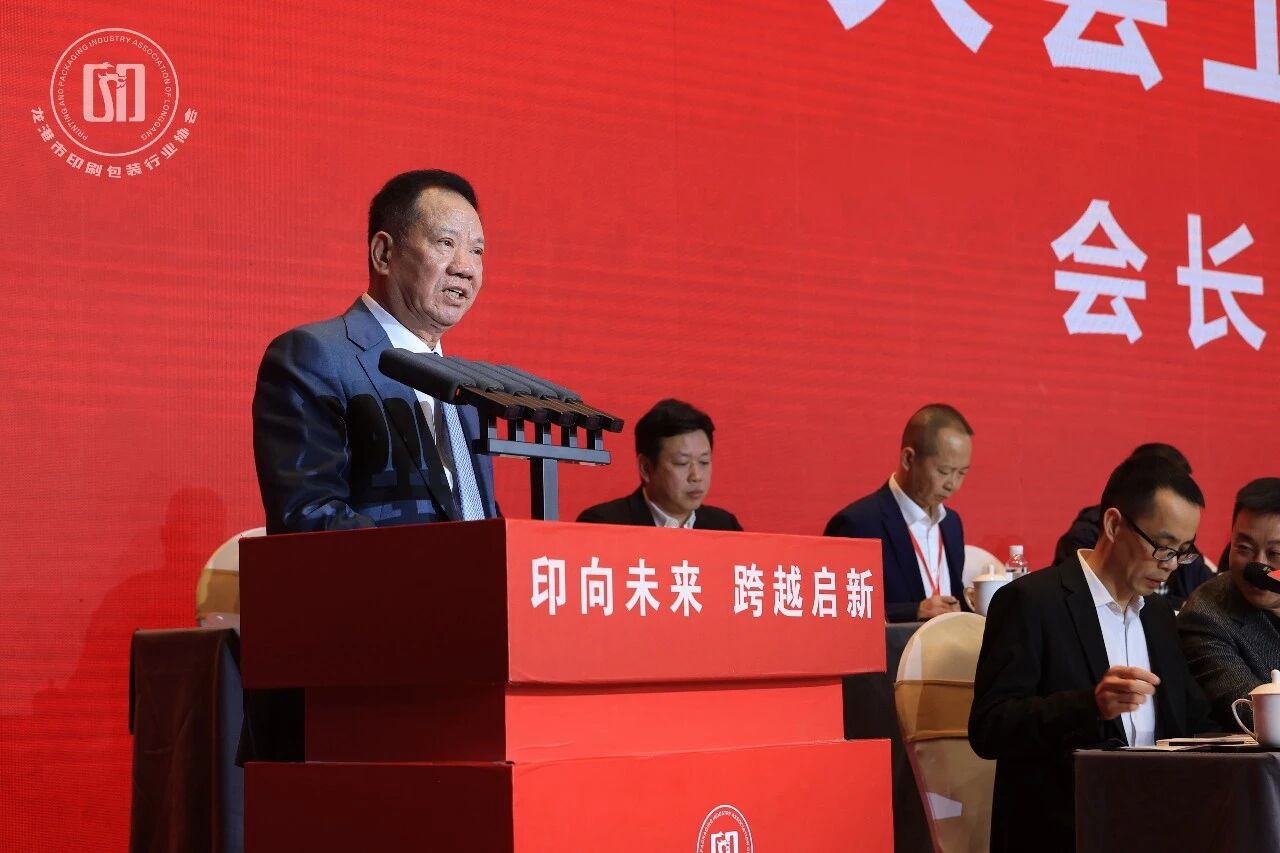 在第一次全体会议上,吴作榜代表第一届理事会作《发挥先锋模范作用 开启龙港印刷新篇》大会报告。五年来,龙港印刷包装产业发展迅速。全市现持有印刷经营许可证企业897家,其中规上企业213家、高新技术企业124家、专精特新企业20家,获评省级出口名牌企业4家、国家级知识产权示范企业1家,省级博士后工作站1个、省级绿色工厂1家。龙港印刷包装行业成功入选省级中小企业特色产业集群,“中国印刷城”跻身首批100个“浙江文化标识”培育名单,行业知名度与区域品牌力持续跃升。全市印刷包装相关经营主体达47240家,全产业链产值突破500亿元,成为全国乃至全球印刷包装产业链集中度最高的“印”地带。协会建设取得了新成绩。第三次获评“5A”级社会组织,荣获全国“四好”商会、温州市模范集体(2019-2024年)、龙港市模范集体(2019-20会、龙港市四星级党支部等荣誉;运营的品牌指导服务站列入全国首批商标品牌价值提升行动名单,成功获批行业集体商标1枚。五年来,协会坚持以党建为引领,紧扣产业转型发展主线,在企业服务优化、交流合作平台搭建、内外资源联动拓展、行业标准化建设推进及产业品牌宣传推广等方面深耕细作,落地一系列扎实举措,为龙港印刷包装产业高质量发展筑牢坚实基础。报告对未来行业的发展提出了新的展望,龙港印协将持续锻造龙港印刷品牌硬核实力,拓宽市场版图、放大品牌声量,同时不断升级协会服务能力,为企业发展保驾护航,助力龙港印刷产业再攀高峰!