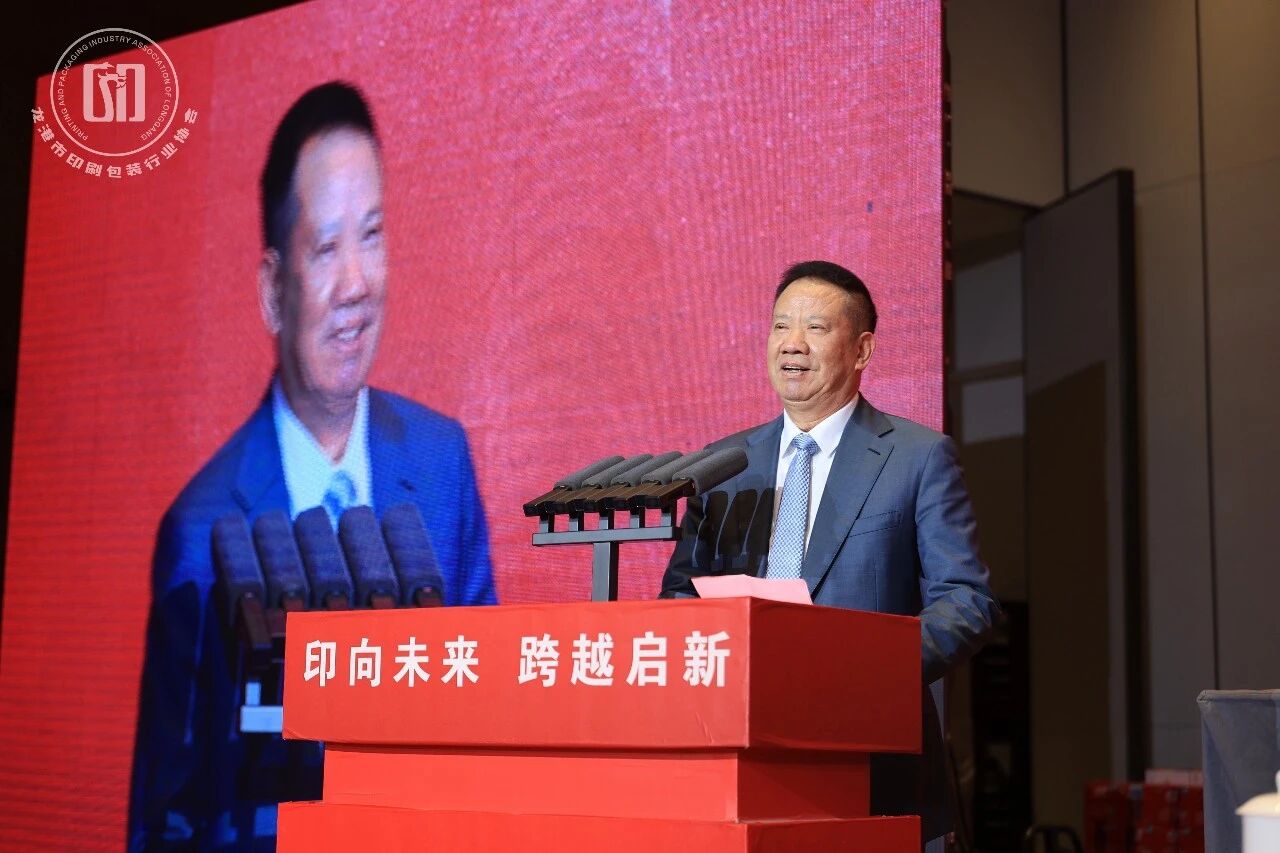 最后,市委常委、宣传统战部部长夏天舒作重要讲话。他首先代表市委对大会的召开表示热烈祝贺,并高度肯定协会在龙港印刷产业发展中发挥的重要作用。他指出,印刷包装产业是龙港支柱产业,凭借规模大、产业链完备的优势铸就 “中国印刷城” 名片,是区域经济增长的关键力量;同时赞扬协会团结企业深耕主业、创新发展的贡献,表明市委市政府对此充分认可。他希望广大企业家坚定信心、做强主业,为龙港经济高质量发展注入强劲动力;希望龙港市印刷包装行业协会团结带领全体印刷包装企业锐意进取、携手共进,为加快建设创新龙港、因地制宜发展新质生产力贡献协会力量。市委市政府将一如既往地把服务民营经济“两个健康”作为重要职责,不断优化营商环境,让广大民营企业家投资放心、发展安心、干事舒心。