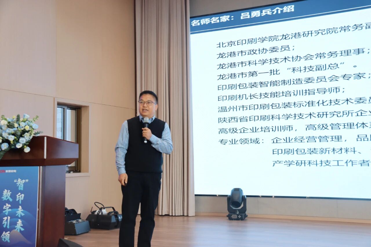 活动现场,行业嘉宾与企业代表带来多场精彩专题分享。北京印刷学院龙港研究院常务副院长吕勇兵,以《AI时代数字赋能智印未来——数智化助力传统印刷企业全面实现增产增效》为题,阐释了印刷业数字化转型的核心价值。