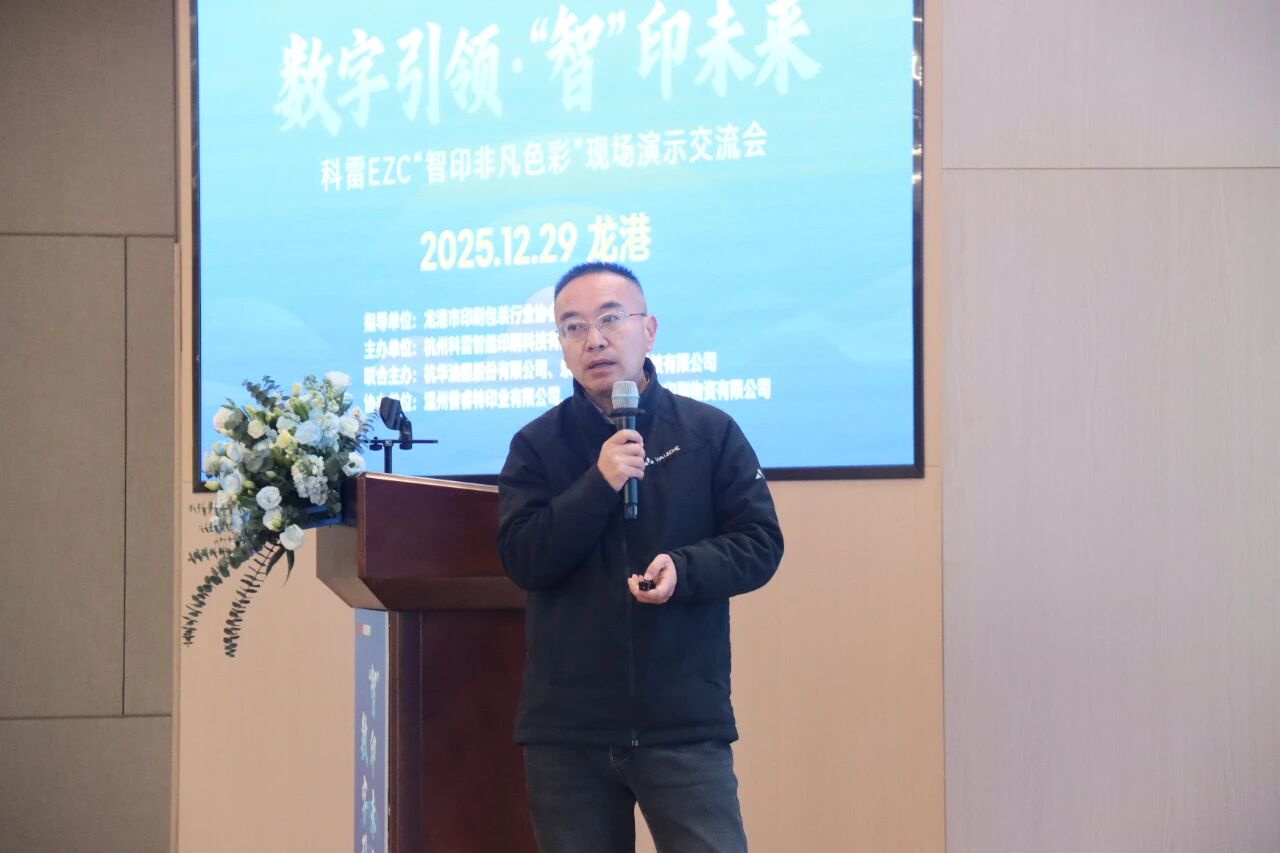 科雷产品经理许柱聚焦EZC智能放墨系统展开详解,该系统可有效攻克印刷色彩难题,在不同生产速度下保障色彩稳定统一,更凭借软硬件双升级实现精度突破,为龙港印企数字化升级注入强劲动力。