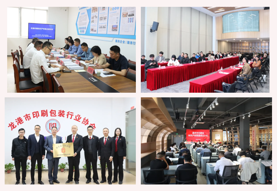 知识产权保护成效显著。在省市监局成功备案成立浙江(龙港)数智印刷业知识产权联盟,构建产业专利池、版权池和数据知识产权池,协会开发的相关数据知识产权获全省商协会领域首个数据知识产权证书,累计帮企业完成版权登记3187件;推动瑞安市人民法院和瑞安市人民检察院在协会设立“知识产权司法保护助企联络点”、“共享法庭”和“知识产权检察联络点”,提供便捷司法服务。