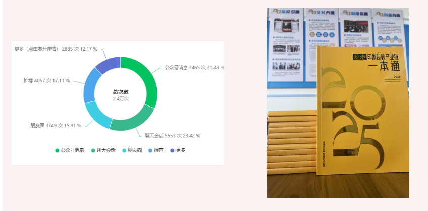 自有平台持续发力。编印《龙港印刷》10期、《奋楫》特刊5期,策划专题10个、封面人物10人,多篇文章被《中国新闻出版报》采用;编印2021版、2022版、2025版《龙港印刷包装产业链一本通》,便利业务交流和生产协同;运营微博、微信公众号、抖音、视频号等新媒体,五年推送微信公众号1409期、视频 576条,微信公众号活跃度、阅读量与影响力稳居全国印刷行业协会前列。