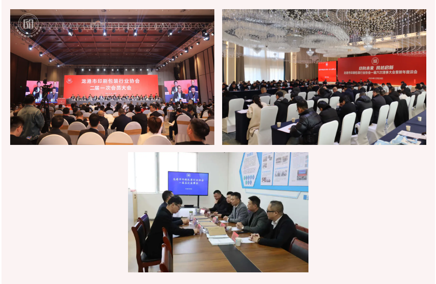 这五年,协会工作亮点纷呈,彰显担当新作为。作为龙港商协会改革的“排头兵”,协会充分发挥劳模集体先锋模范作用,敢闯敢试、奋勇拼搏。联动市政协打造浙江省政协龙港印刷包装政协委员会客厅,牵头组建浙江(龙港)数智印刷知识产权联盟,成立龙港市印刷包装行业联合工会,通过多个平台建设,持续提升协商统筹和服务能力;第三次获评“5A”级社会组织,荣获全国“四好”商会、温州市模范集体(2019-2024 年)、龙港市模范集体(2019-2023 年)、温州市五星级清廉协会、龙港市四星级党支部等荣誉,受龙港市委市政府嘉奖一次;品牌指导服务站列入全国首批“千 企百城”商标品牌价值提升行动名单,成功获批行业集体商标1枚,为产业品牌化发展筑牢根基。五年来,我们重点从以下八个方面发力,推动工作走深走实: