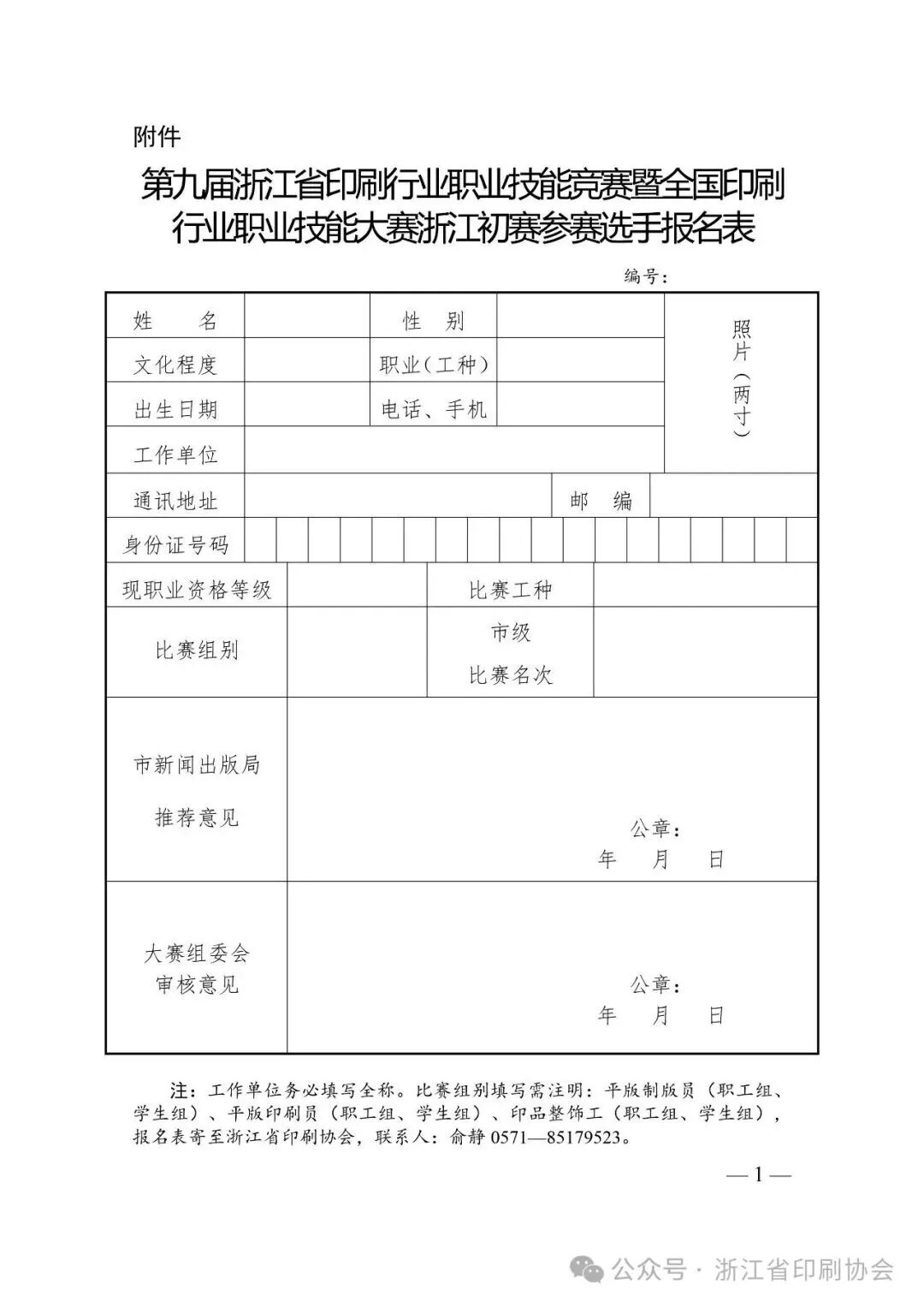 根据《国家新闻出版署 人力资源社会保障部关于举办2025年全国行业职业技能竞赛—第九届全国印刷行业职业技能大赛的通知》《浙江省新闻出版局 浙江省人力资源和社会保障厅关于举办第九届浙江省印刷行业职业技能竞赛暨全国印刷行业职业技能大赛浙江初赛的通知》要求,为认真做好我市赛区初赛组织工作,结合工作实际,龙港市印刷包装行业协会现就有关事项通知如下。