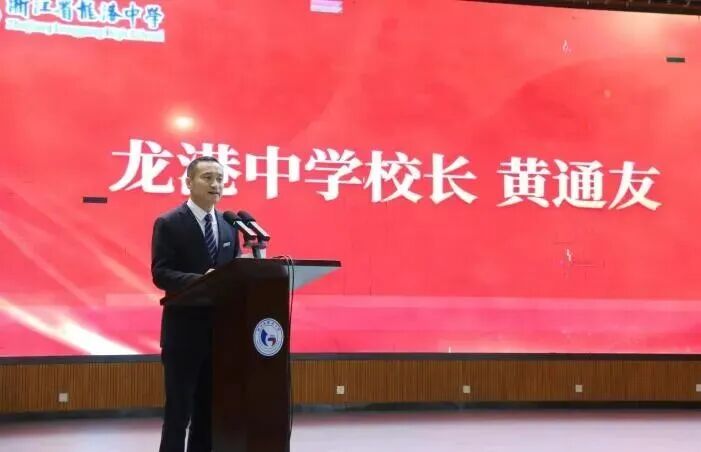 龙港中学2026届高三学子在首考中取得了十分优异的成绩。为表彰先进,鼓励全体学子奋力冲刺6月份的高考,2月7日下午,由浙江华旭实业有限公司出资设立的龙港中学2026年“华旭”奖学金首考颁奖典礼,在学校德润大礼堂隆重举行。龙港中学党总支书记薛振尧、校长黄通友,浙江华旭实业有限公司董事长杨介梁携公司总经理杨平旭等人出席典礼,与学校师生共同见证榜样荣光,践行企业社会责任,传递华旭传递实业反哺教育的温暖力量。