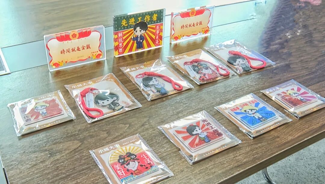 “我们围绕李秋萍镇长形象打造的卡通版钥匙扣,还搭配了《小城大事》主题的小配件卡牌,通过挂绳串联,既可以挂在背包上,也能作为日常挂件,造型简约美观,形象也十分贴合剧中人物。”章芳菲拿着产品向记者介绍道。